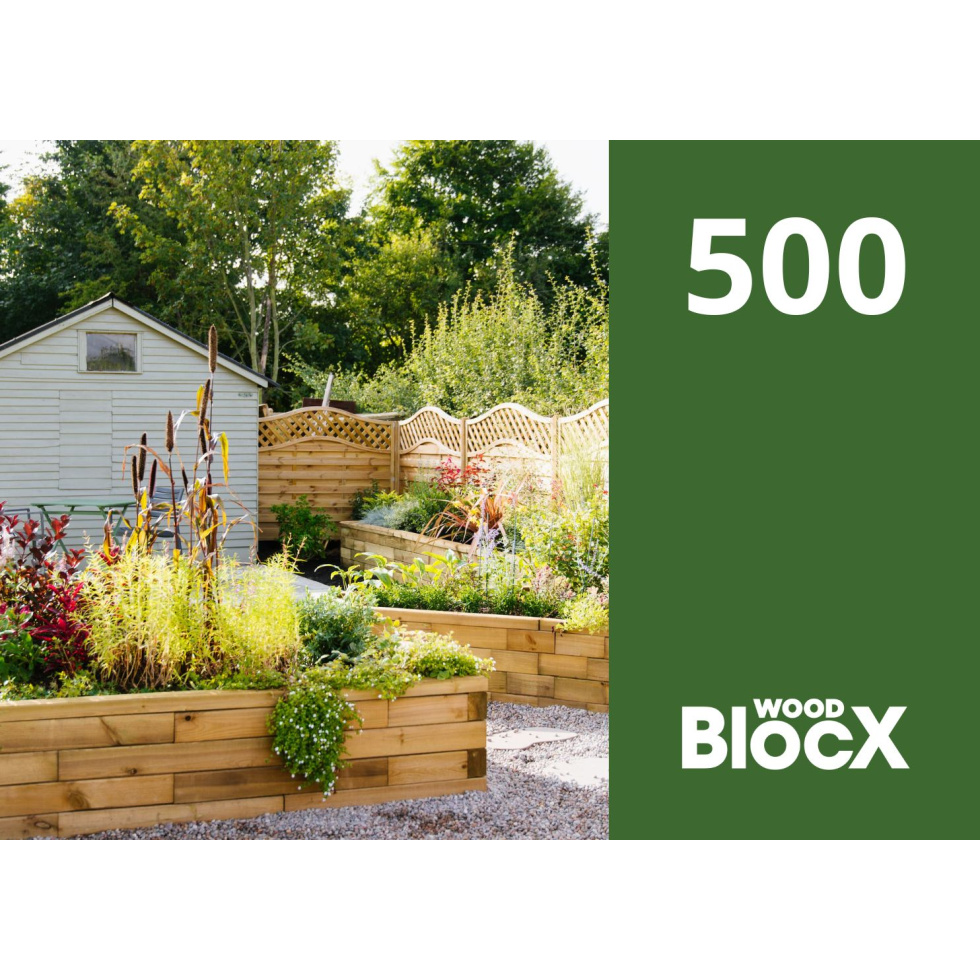 Nos bons d’achat peuvent être utilisés sur tout le contenu de notre site web. Cela comprend les kits WoodBlocX standard, les jardinières surélevées, les bassins surélevés, les murs de soutènement et même les créations sur mesure de notre service de conception gratuit.