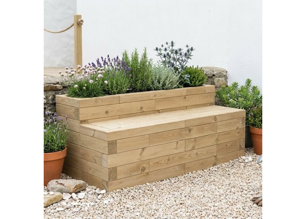 Si vous avez besoin d’une taille spécifique de banc avec jardinière pour votre jardin, utilisez notre service de conception gratuit. Pour les grands jardins, nos kits de banc avec jardinière en L associent une jardinière surélevée et un bel espace pour s’asseoir.