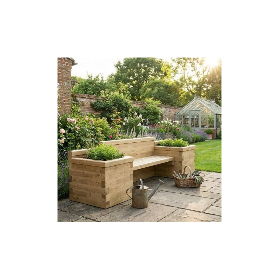 Banc de jardin - Extra long avec jardinières bois / 270 x 75 x 85 cm