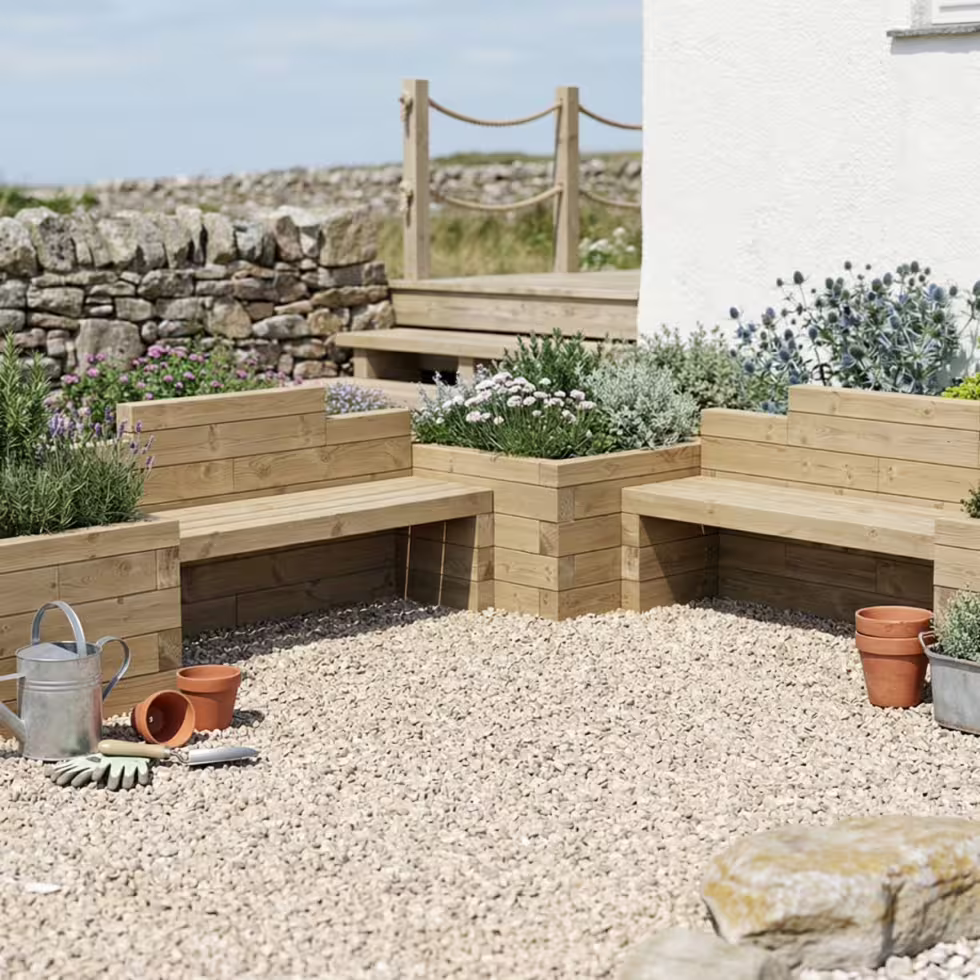 Banc de jardin pour enfants - Jardinières bois / 300 x 300 x 65 cm