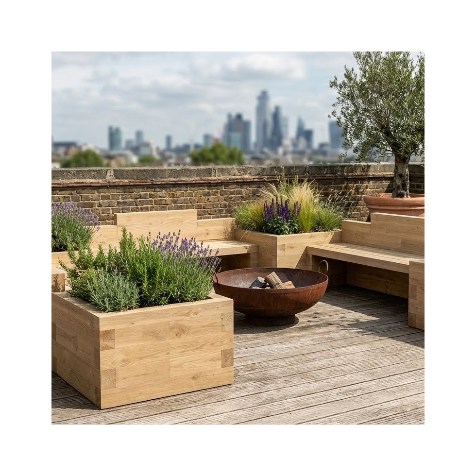 Bancs de jardin avec jardinières en U 3.75m x 3.75m x 0.55m