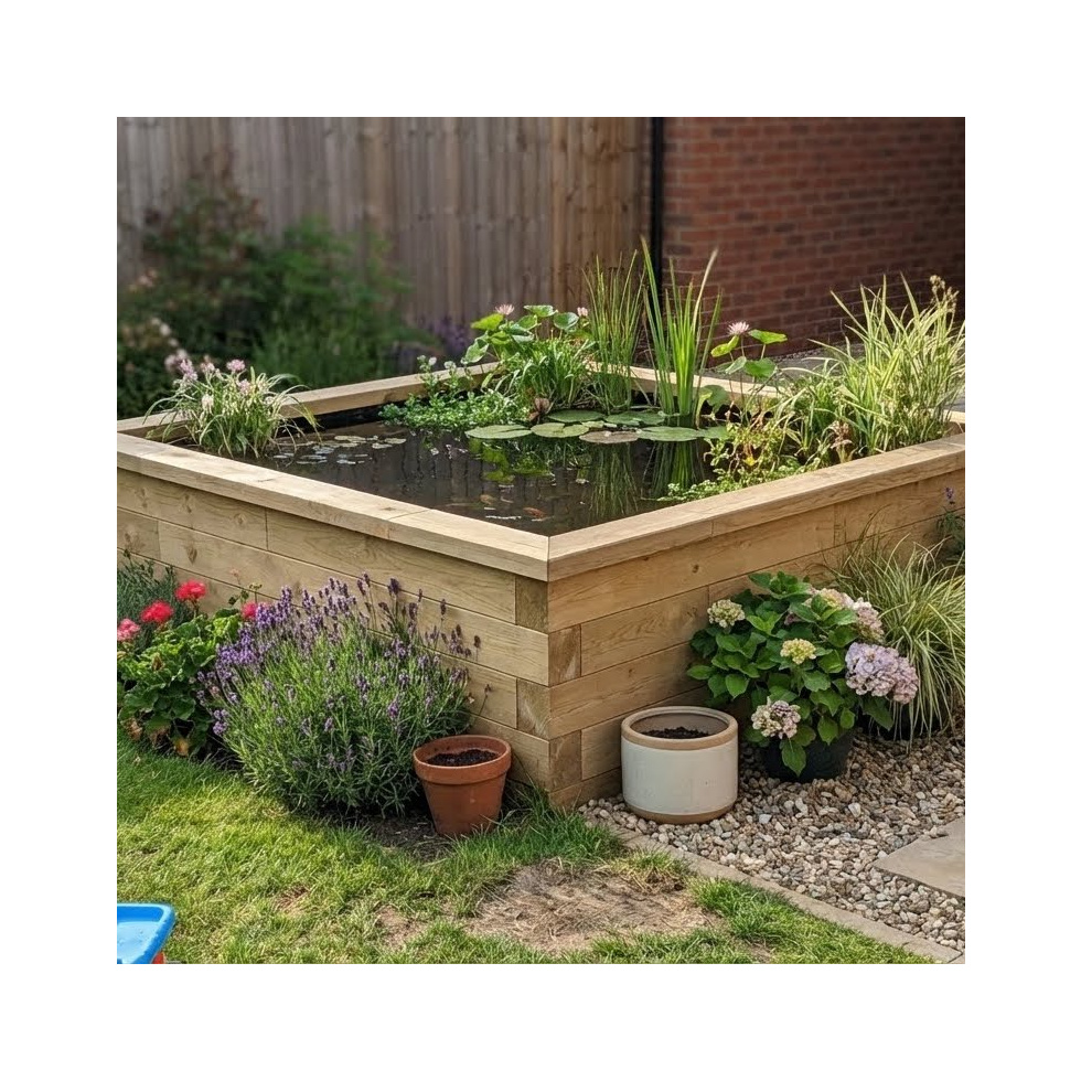 Trouvez votre zen avec cet adorable étang de jardin carré qui pourrait facilement abriter une variété de poissons d'eau douce scintillants, de bateliers patineurs, de demoiselles volantes et de nénuphars dérivant paresseusement. Quel meilleur moyen de se détendre que d'admirer cette beauté dans votre propre jardin, une tasse de thé à la main ?