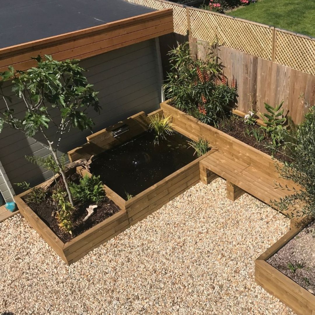 L’ajout d’un bassin surélevé intégré à une bordure est un jeu d’enfant avec WoodBlocX. Nous vous recommandons d’utiliser nos petits bassins pouvant faire 1,875 m de large ou de long et 0,65 m de haut. Toutefois, nous pouvons créer des bassins plus grands en faisant appel à notre design à double paroi.