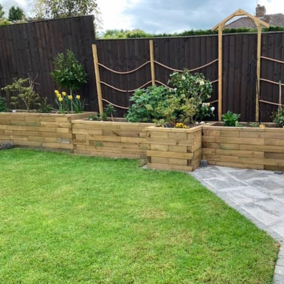 Si vous avez un problème de lapins dans votre jardin, vous pouvez aussi rehausser vos bordures ! Les bordures surélevées sont très esthétiques et avec WoodBlocX vous aurez le choix d’ajouter des éléments supplémentaires comme des formes différentes, des courbes et des sièges.