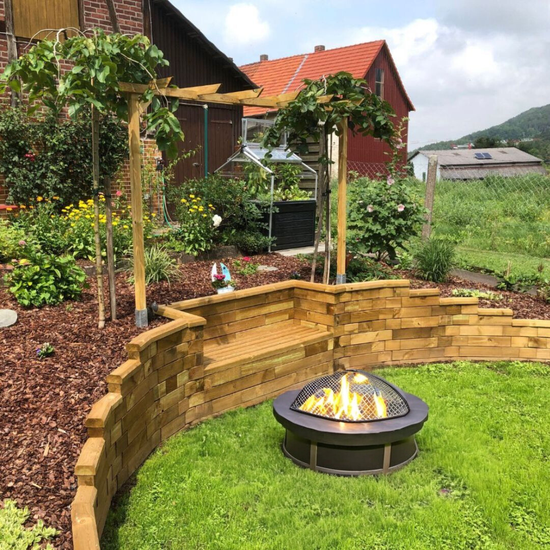 Ce design compact comprend deux zones séparées pour les plantations, beaucoup de place pour s’asseoir et un espace sous la banquette pour entreposer le bois. Elle n’occupe également pas beaucoup de place dans le jardin. La banquette de ce brasero a été créée au moyen de notre service de conception gratuit en utilisant les dimensions fournies par le client pour son espace.