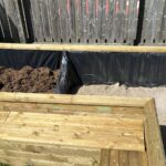 Lorsqu’on construit une jardinière surélevée, il est important d’ajouter une bâche de protection interne pour créer une barrière entre le bois et le terreau, et garantir la longévité de la jardinière. Avant d’ajouter le rebord final, David a installé une bâche de protection. Une fois le rebord ajouté, David a rempli sa jardinière de terreau et a commencé à planter des arbustes et des plantes.