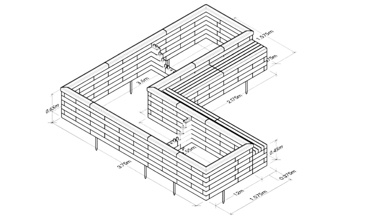 De façon à pleinement utiliser l’espace disponible, David a examiné les différents choix de bancs et jardinières intégrés pour son jardin. Il a choisi notre kit tout prêt de grande jardinière en L avec banc. Les dimensions du kit 3,75 m x 3,75 m x 0,65 m lui donneraient tout l’espace voulu pour ses cultures ainsi qu’une grande banquette pour s’asseoir et profiter du jardin.
