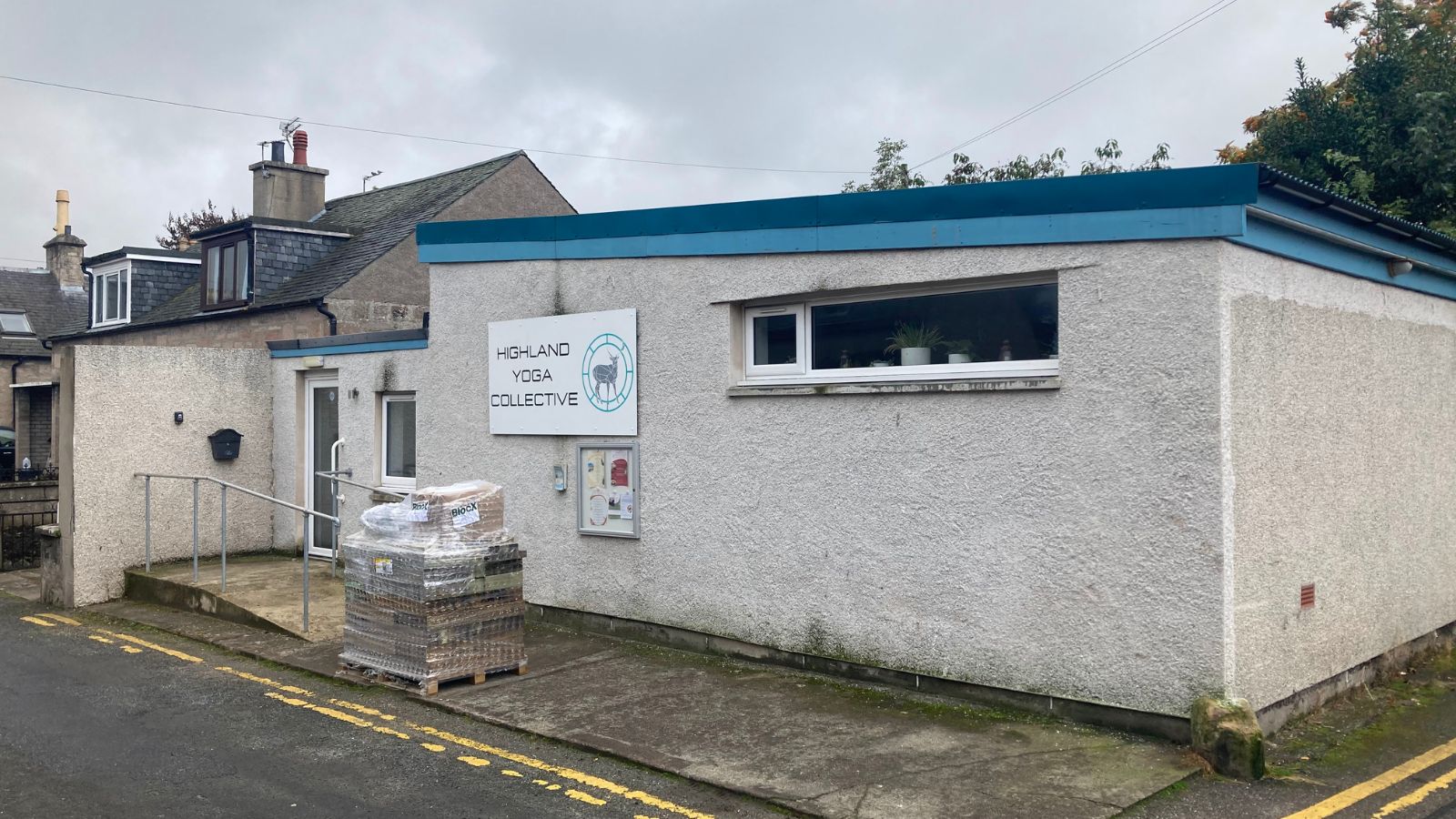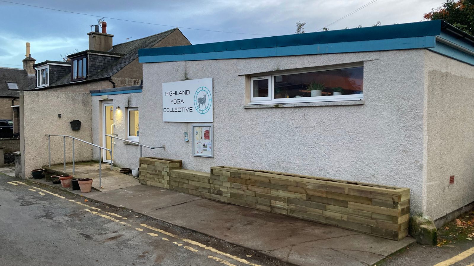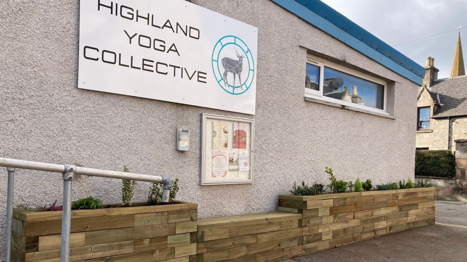 La salle de yoga Highland Yoga Collective voulait ajouter de la verdure devant le bâtiment pour égayer le chemin d’accès et le crépi extérieur. Il y avait suffisamment de place pour créer une jardinière avec banc intégré facile à entretenir, mais le plan devait être construit autour d’une main courante fixe et d’un panneau d’affichage déjà en place sur la façade.