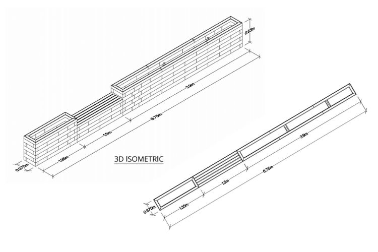 Après avoir mesuré l’espace à l’extérieur du bâtiment, l’équipe de la salle de yoga a envoyé une demande avec des dessins et quelques photos via notre service de conception gratuit afin de créer une jardinière surélevée étroite avec un banc intégré au rebord moderne. Pour que l’entrée de la salle reste accessible à tous, le plan devait faire 37,5 cm de large et 6,75 m de long au total afin de longer pratiquement tout le bâtiment.
