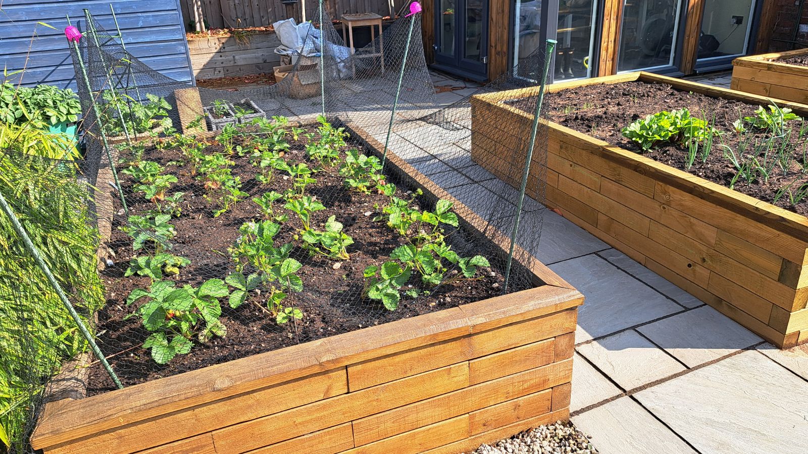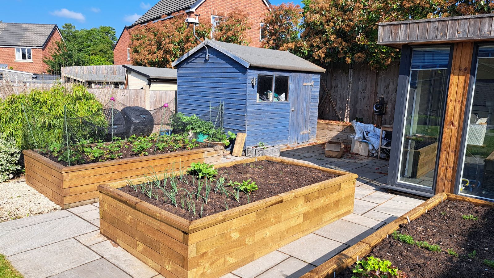 Les jardinières surélevées terminées d’Ian complètent joliment sa jardinière WoodBlocX. La jardinière existante a été revêtue d’une huile naturelle teintée pour avoir la même couleur que les nouvelles jardinières. Ce trio forme un excellent point focal dans le jardin et crée un grand espace de culture. Notre client a choisi d’ajouter des protecteurs de culture aux jardinières pour les prémunir contre les nuisibles. Vous pouvez aussi faire pousser des fleurs, des arbustes et des aromates dans nos bacs : à vous de choisir !