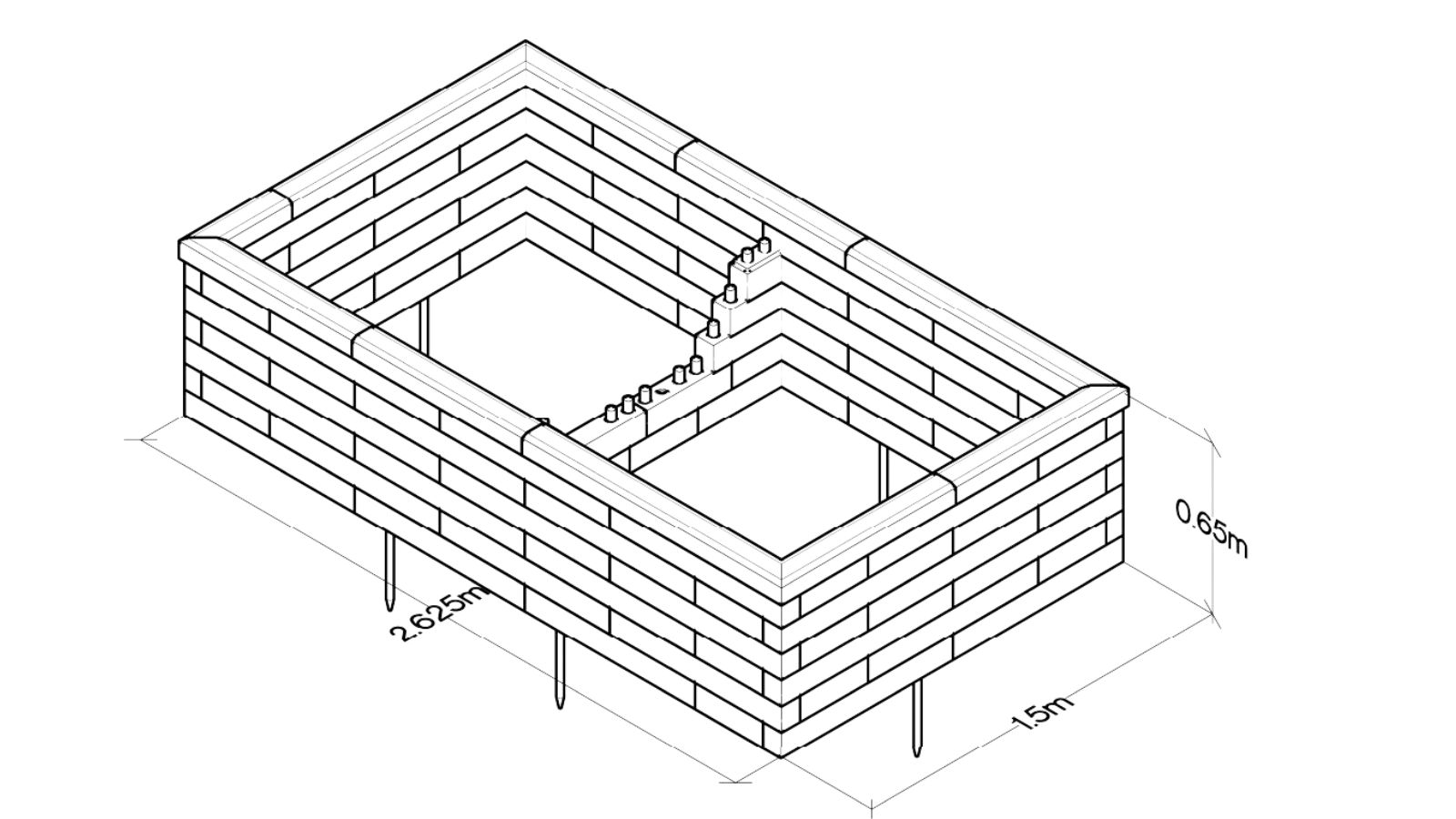 Puisqu’il avait déjà une jardinière WoodBlocX, il était important de choisir la même taille pour harmoniser le tout. Ian s’est servi de notre calculateur de jardinière en ligne pour saisir les dimensions : 1,5 m de long x 2,625 m de large x 0,65 m de haut. Ces deux jardinières étaient prévues pour compléter la jardinière existante et agrandir le potager.