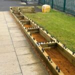 Au moment de planifier la cour, Twining’s nous a contactés via notre service de conception gratuit qui offre de multiples corrections de vos plans sans obligation d’achat. L’idée de départ comprenait l’ajout de plusieurs jardinières surélevées et d’une jardinière avec banc intégré. En travaillant avec Harry le concepteur WoodBlocX, ils ont finalement décidé de créer une longue jardinière. Comme le terrain était en pente, le choix de design était limité, toutefois, vous pouvez construire WoodBlocX sur n’importe quel type de terrain, à condition de bien le niveler.