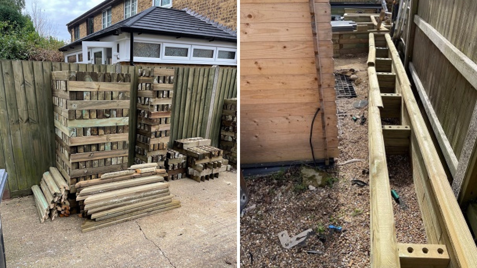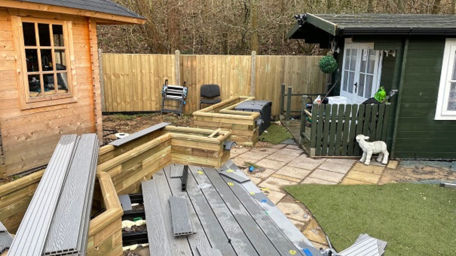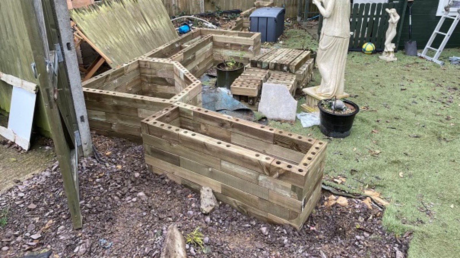 La transformation du jardin de notre client a nécessité le réaménagement du jardin ouvert en un espace beaucoup plus intéressant avec des jardinières surélevées WoodBlocX de différentes tailles, toutes jointes par des allées et du gazon synthétique pour ajouter un peu de vert.