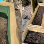 Le design final comprend des jardinières surélevées de différentes formes, notamment des rectangles positionnés de telle sorte qu’ils forment des bacs en L. Chacun des bacs a été chemisé puis rempli de plantes et de fleurs qui ajoutent une palette de couleurs à l’espace.