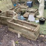 Pour commencer, notre client a nettoyé tout l’espace de son jardin pour accueillir les nouvelles jardinières. Vous pouvez construire les structures WoodBlocX sur n’importe quelle surface : terre, gazon, dalles, béton ou goudron. Pour une pose sur gazon ou terre, nous fournissons des tiges d’ancrage qui garantissent que la structure est fermement fixée dans le sol en évitant tout mouvement.