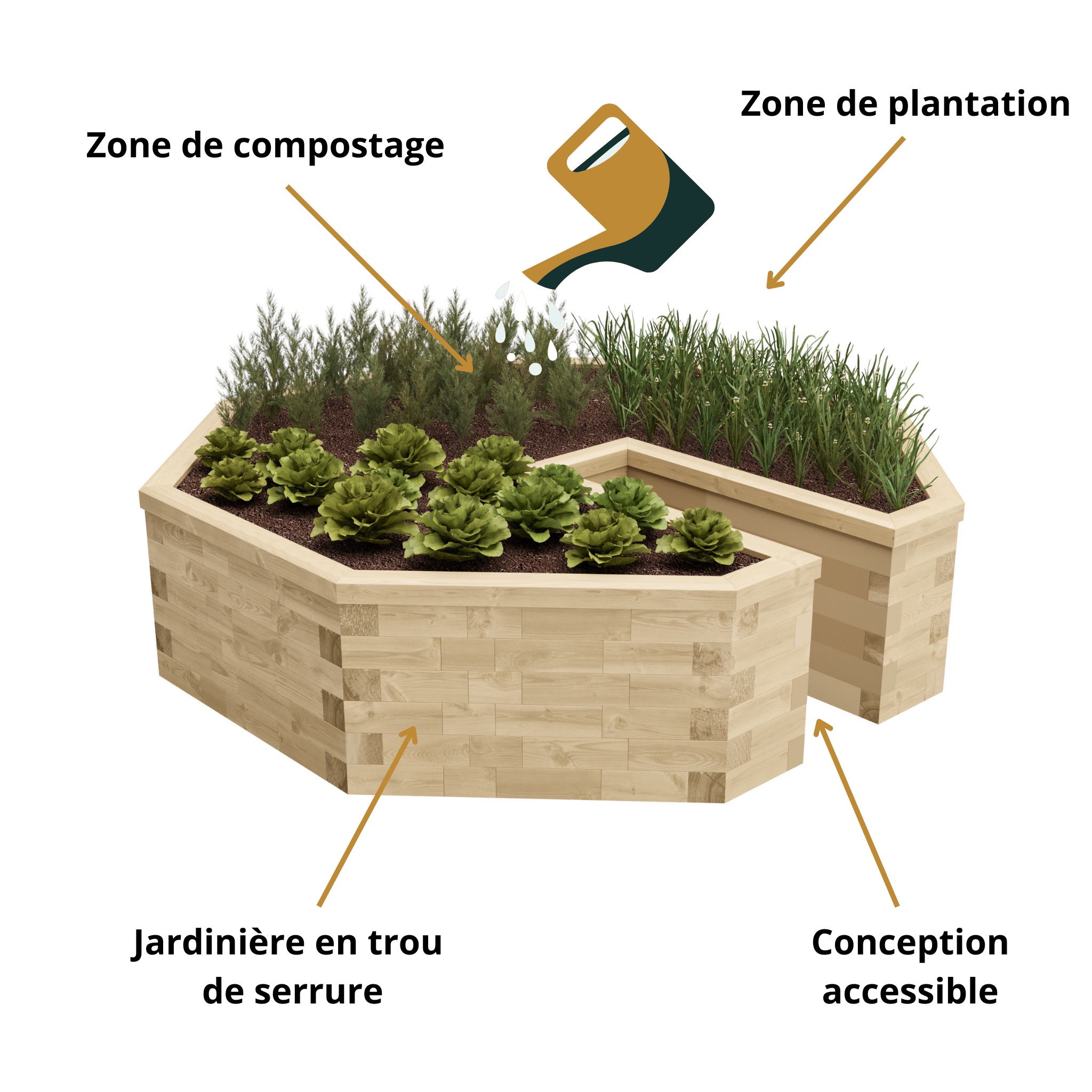 Les plates-bandes surélevées en trou de serrure retiennent l'humidité, ce qui signifie que vous n'aurez pas besoin d'arroser vos plantes aussi souvent pendant la saison de croissance. De plus, la zone centrale au cœur de la jardinière surélevée crée une méthode durable de génération de nouveau compost et encourage le recyclage.