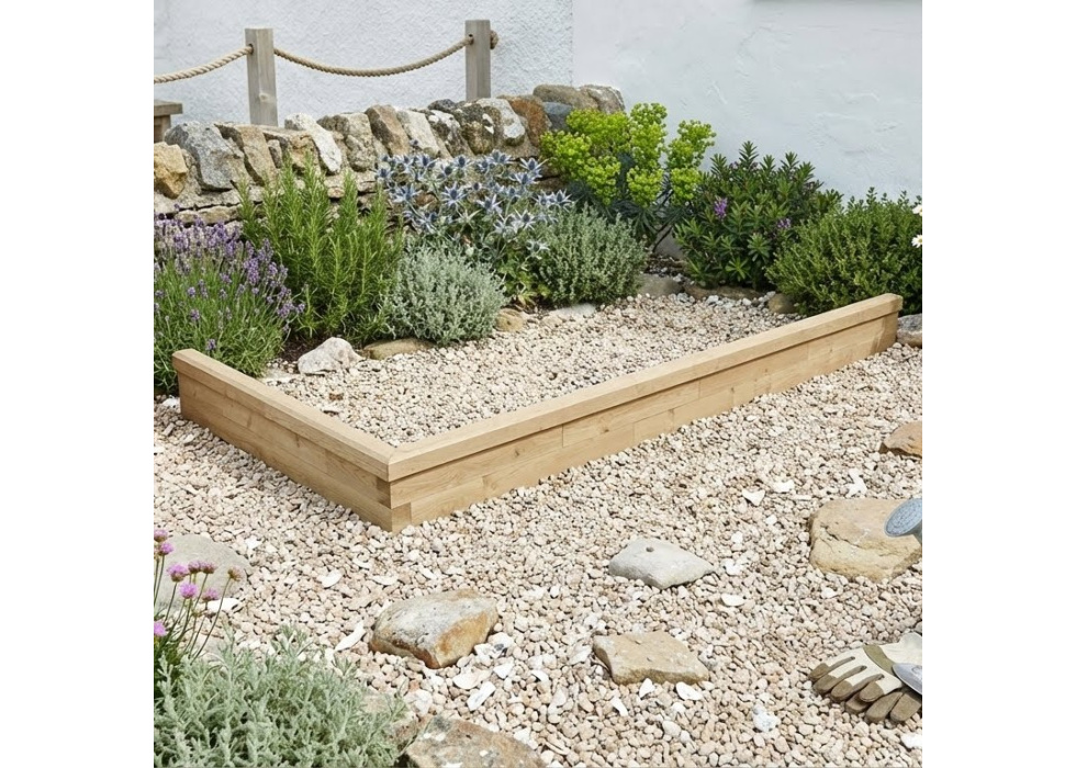 Wooden Garden Border Edging With Turn / 3.0 x 1.5 x 0.25m