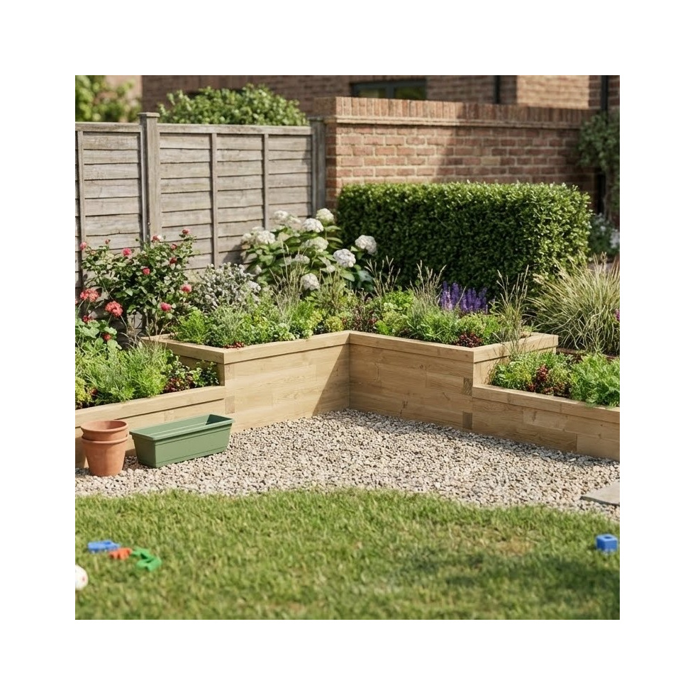 Multi Level L-Shaped Corner Raised Bed / 3.0 x 3.0 x 0.45m