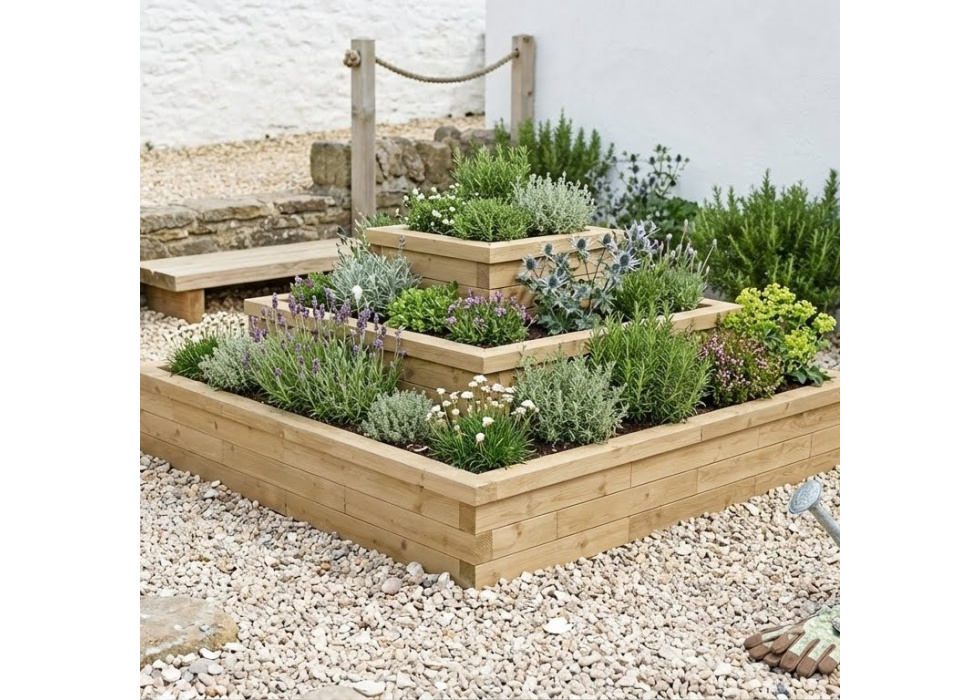 Cette structure est idéale en élément central d’un jardin devant une maison ou à l’arrière. La pyramide est un carré de 2,25 m x 2,25 m et peut aussi servir à planter un petit arbuste au sommet entouré de fraisiers ou d’herbes aromatiques.