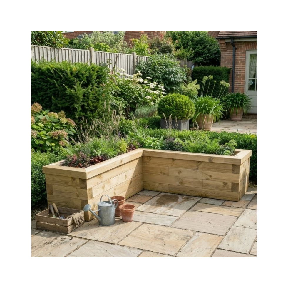 Jardinière bois d'angle en L 150 x 150 x 45 x 45 cm