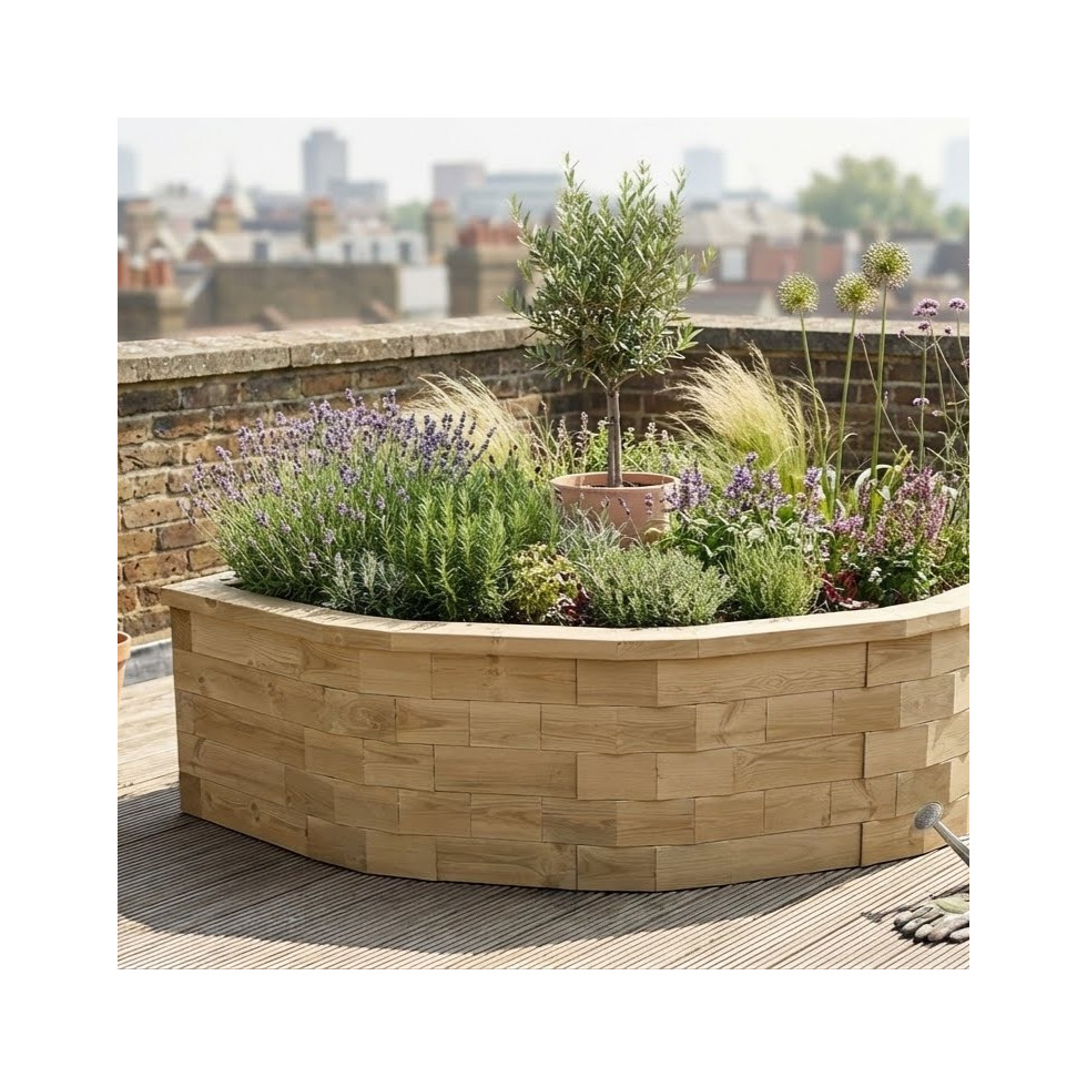 Jardinière bois d’angle arrondie 150 x 150 x 55 cm