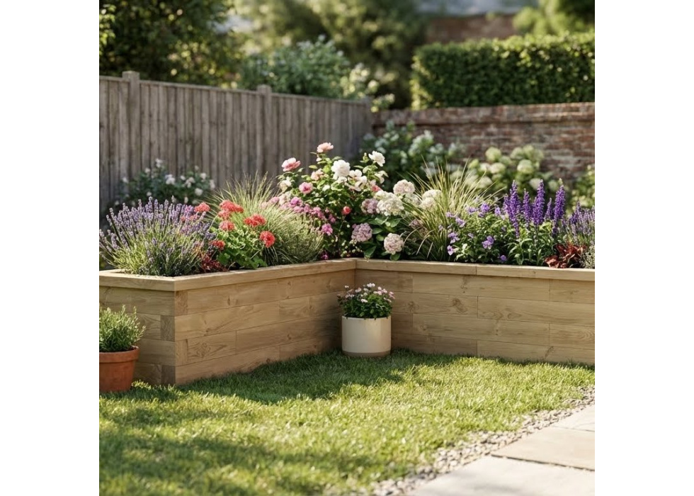 Jardinière bois en L - Extra longue 300 x 262,5 x 45 x 45 cm