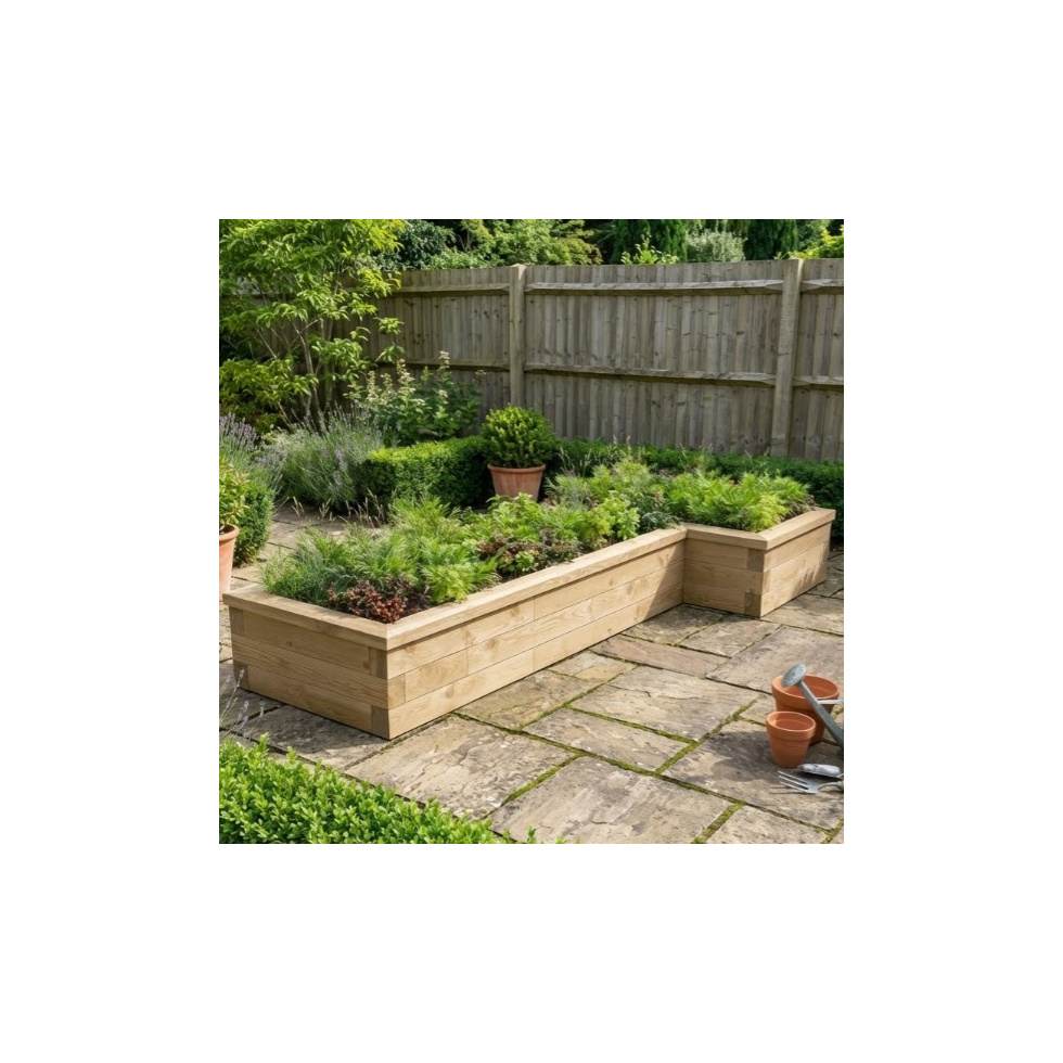 Une grande jardinière . Ce kit en forme de L est parfait pour les coins peu pratiques, vers un portail ou entre un mur et une porte.