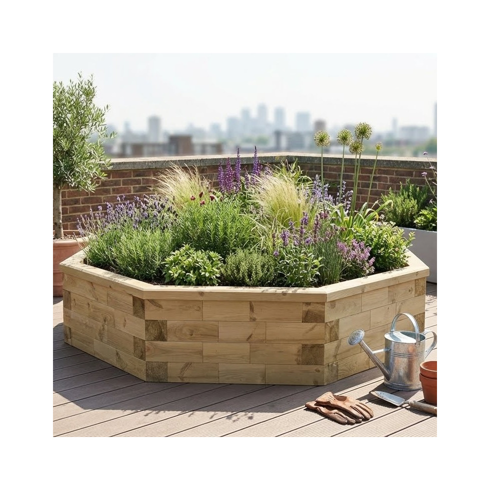 Grande jardinière bois octogonale 206,7 x 45 cm