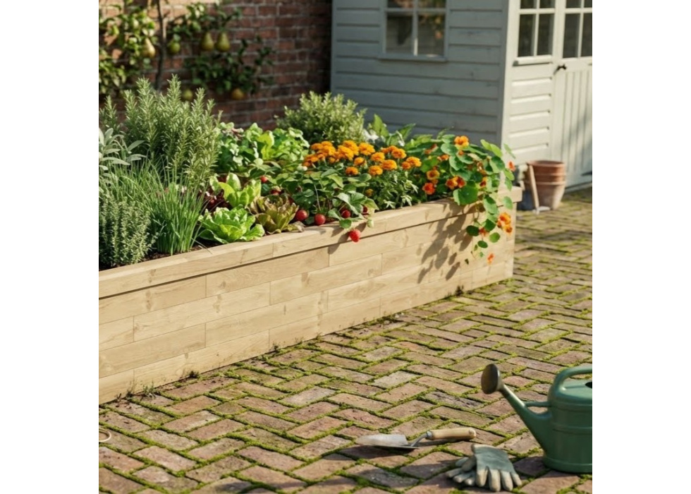 La polyvalence de WoodBlocX permet de concevoir des jardinières parfaitement adaptées à votre jardin. Si vous souhaitez installer un potager, nos jardinières sont concues pour etre placées sur surfaces dures( béton, pavés, goudron..) ou sur plus souples ( herbe, terre...).Les traverses de chemin de fer, populaires, peuvent neanmoins libérer des produits chimiques à haute temperatures et polluer votre espace. WoodBlocX est plus adapté à la protection des coins à légumes et permet de créer des allées attrayantes et colorées. WoodBlocX sont également fabriqués conformément aux directives de l'organisme de certification de l'agriculture biologique brritannique pour vous permettre de faire pousser des légumes de facon naturelle et respectueuse de l'environnement.