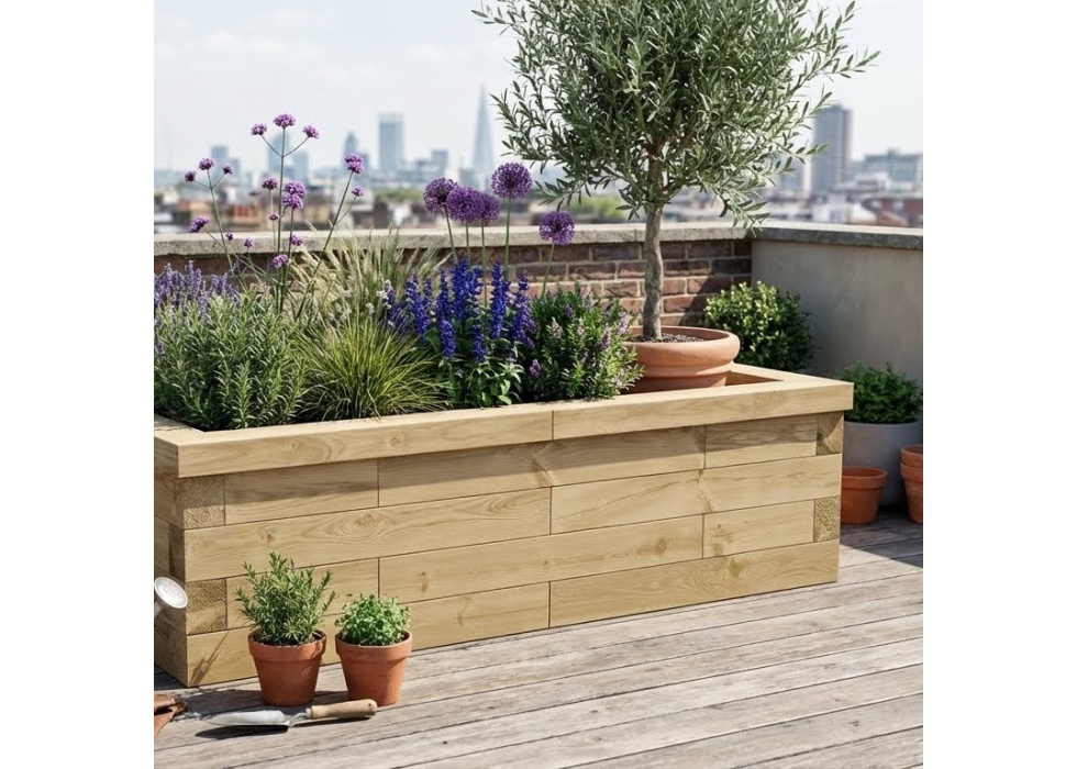 Jardinière bois en traverses paysagères / 150 x 75 x 45 cm