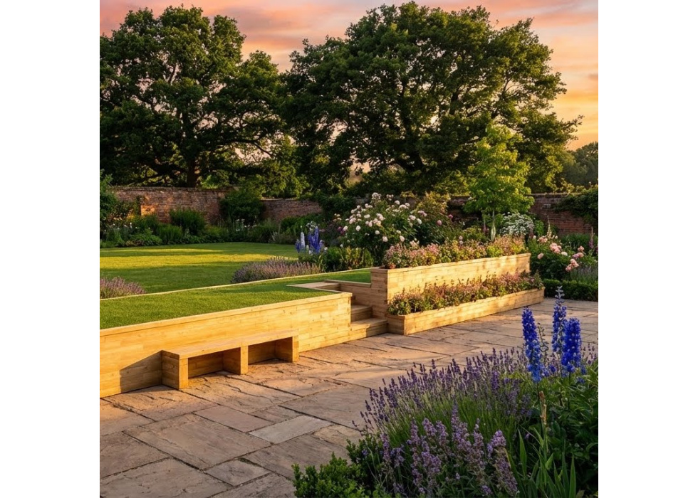 Mur de soutènement - Grand avec assise et plantation / Conception client